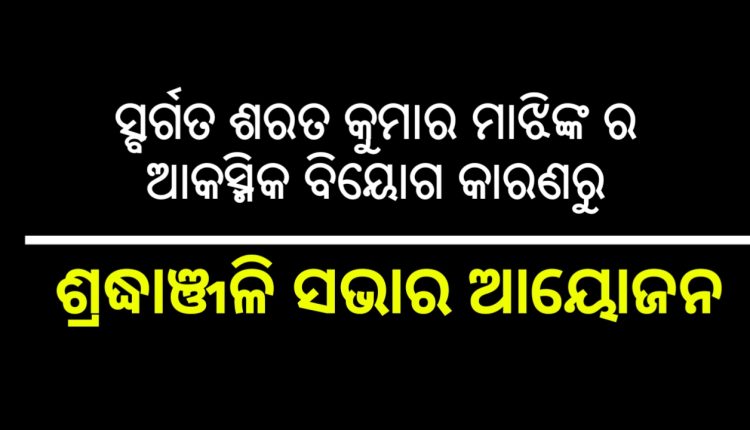 ଲେଖିବାର କାରଣ ଏହିକି ଯେ, ଓଡିଶା କଳା ଜଗତ ର ଜଣେ ପ୍ରଥିତଯଶା ନାଟ୍ୟ ବ୍ୟକ୍ତିତ୍ୱ ସ୍ବର୍ଗତ ଶରତ କୁମାର ମାଝି ଙ୍କ ର ଆକସ୍ମିକ ବିୟୋଗ କାରଣ ରୁ, ଚମତ୍କାର, ନାଟ୍ୟଧାରା, ଶ୍ରୀ ସୃଜନ, ନୟାଗଡ଼ ପକ୍ଷରୁ ଏକ ମିଳିତ ଶ୍ରଦ୍ଧାଞ୍ଜଳି ସଭାର ଆୟୋଜନ କରାଯାଉଛି,