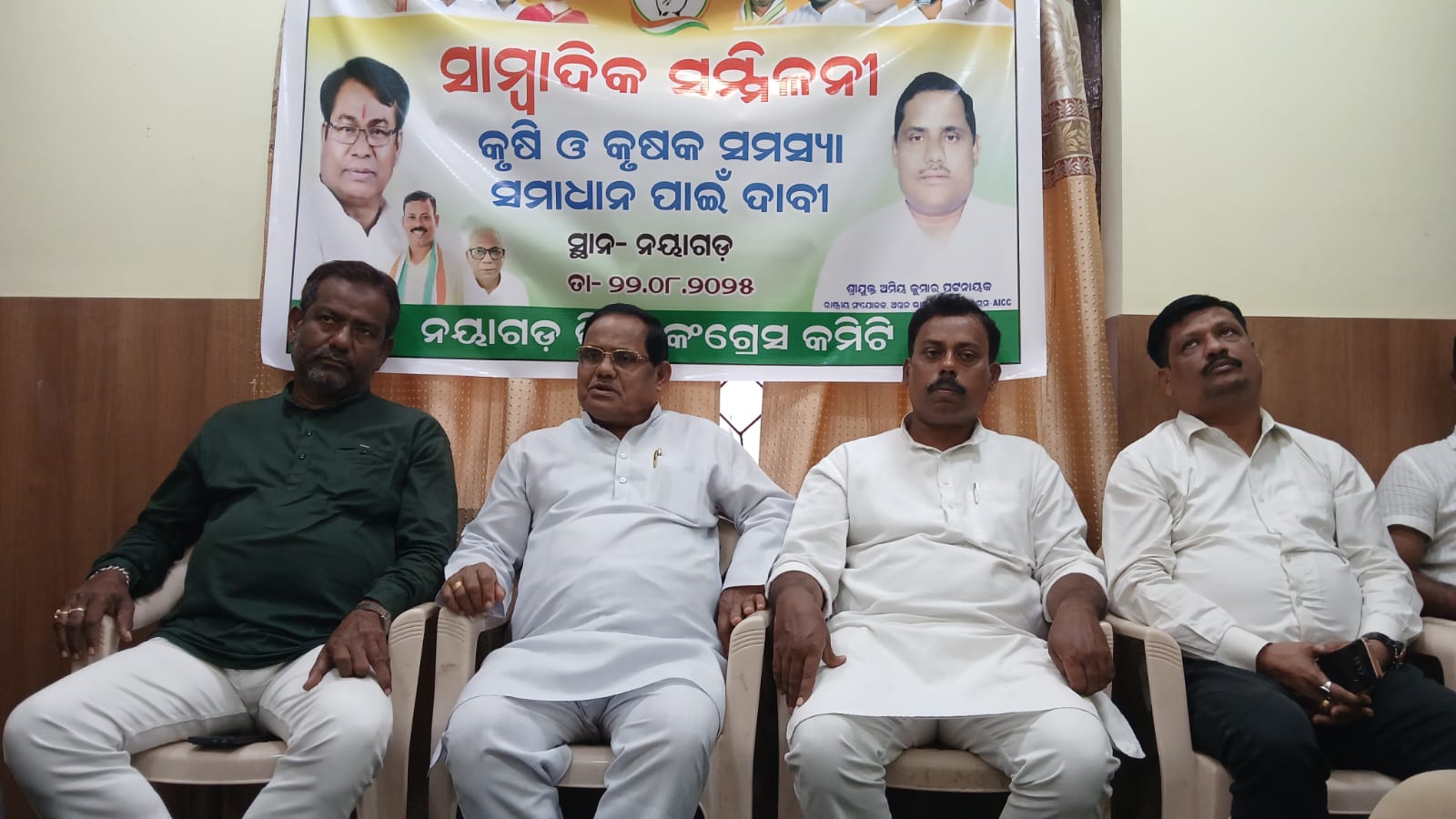 କୃଷି ଓ କୃଷକ ସମସ୍ୟା ସମାଧାନ ନେଇ ପୂର୍ତ୍ତ ବିଭାଗ ଡାକ ବଙ୍ଗଳା ଠାରେ ନୟାଗଡ଼ ଜିଲ୍ଲା କଂଗ୍ରେସ କମିଟି ପକ୍ଷରୁ ସାମ୍ବାଦିକ ସମ୍ମିଳନୀ