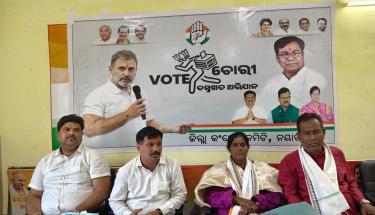 ପିସିସି ସଭାପତି ଶ୍ରୀ ଭକ୍ତ ଚରଣ ଦାସ ଙ୍କ ନିର୍ଦ୍ଦେଶ କ୍ରମେ ନୟାଗଡ ଜିଲ୍ଲାବ୍ୟାପି ଭୋଟ ଚୋରି ଦସ୍ତଖତ ଅଭିଯାନ ଅଗ୍ରଗତି ସମ୍ପର୍କରେ ସମୀକ୍ଷା ବୈଠକ ଜିଲ୍ଲା ସଭାପତି ତଥା ବରିଷ୍ଠ ଆଇନଜୀବୀ ଶ୍ରୀ ରଣଜିତ ଦାଶଙ୍କ ଅଧ୍ୟକ୍ଷତାରେ ଡିସିସି କାର୍ଯ୍ୟାଳୟ ଠାରେ ଅନୁଷ୍ଠିତ ହୋଇ ଯାଇଛି l ପିସିସି ପର୍ଯ୍ୟବେକ୍ଷକ ସୁଶ୍ରୀ ସ୍ୱାଗତିକା ପଟ୍ଟନାୟକ ଏହି ବୈଠକରେ ଯୋଗ ଦେଇ ଜିଲ୍ଲାର ଦଳୀୟ କାର୍ଯ୍ୟକର୍ତ୍ତା ମାନଙ୍କ ସହିତ ଆଲୋଚନା କରି ପ୍ରତ୍ୟେକ ନିର୍ବାଚନ ମଣ୍ଡଳୀ ରେ ଆସନ୍ତା ୧୯ ତାରିଖ ସୁଦ୍ଧା ଅନ୍ୟୁନ ୧0 ହଜାର ସାଧାରଣ ଜନତା ଙ୍କ ଦସ୍ତଖତ କରାଯିବା ଉପରେ ଗୁରୁତ୍ୱ ଆରୋପ କରିଥିଲେ ଏବଂ ଅଦ୍ୟାବଧି ସମଗ୍ର ଜିଲ୍ଲାରେ ପ୍ରାୟ ୧୫ ହଜାର ଦସ୍ତଖତ ସଂଗ୍ରହ କାର୍ଯ୍ୟ ଶେଷ ହୋଇଥିବା ବ୍ଲକ ସଭାପତି ଭାବେ ରିପୋର୍ଟ ଦେଇଥିଲେ l