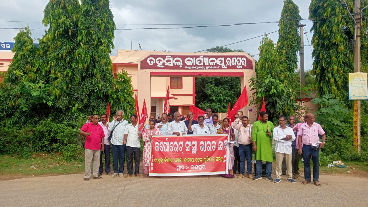 କେନ୍ଦ୍ର ମୋଦୀ ସରକାରଙ୍କ କର୍ପୋରେଟ ଲୁଣ୍ଠନ ଚୁକ୍ତି ବିରୋଧରେ ” ସଂଯୁକ୍ତ କିଶାନ ମୋର୍ଚା ଓ କେନ୍ଦ୍ରୀୟ ଟ୍ରେଡ଼ ୟୁନିୟନ ମିଳିତ ମଞ୍ଚ” ଡାକରାରେ ଆଜି ୧୩ ଅଗଷ୍ଟ ଦେଶ ବ୍ୟାପୀ ପ୍ରତିବାଦ ଦିବସ ପରିପ୍ରେକ୍ଷୀରେ ରଣପୁରରେ କୃଷକ ଓ ଶ୍ରମିକ ଏକତା ମଞ୍ଚ ତରଫରୁ ପ୍ରତିବାଦ ସଭା ସହ ରଣପୁରରେ କୃଷକ ସଭା ର ୨୫ ତମ ରାଜ୍ୟ ସମ୍ମିଳନୀ ର ସଫଳତା ପାଇଁ ଆହ୍ୱାନ ଦିଆ ଯାଇଛି।