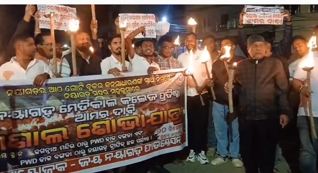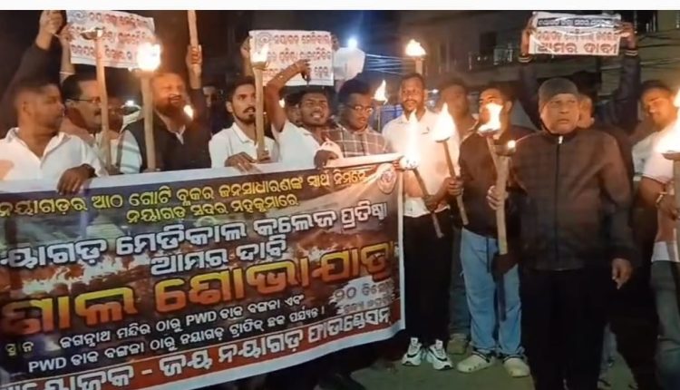 ରାଜନୀତି ନ କରାଯାଇ ନୟାଗଡ଼ରେ ମେଡିକାଲ କଲେଜ ପ୍ରତିଷ୍ଠା ଦାବି ନେଇ ବିଶାଳ ‘ମଶାଲ ଶୋଭାଯାତ୍ରା’ ଅନୁଷ୍ଠିତ