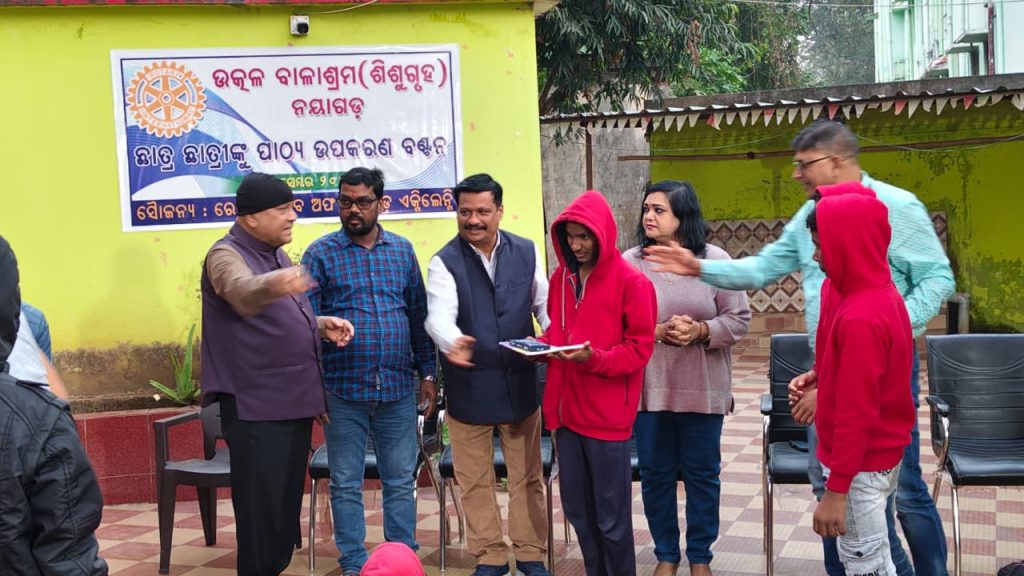ନୟାଗଡ ରେ ନୂତନ କରି ଗଢି ଉଠିଥିବା ନୂତନ ରୋଟାରି କ୍ଲବ ଏକ୍ସଲେନ୍ସୀ ଆନୁକୂଲ୍ୟରେ ଆଜି ଉତ୍କଳ ବାଳାଶ୍ରମରେ କୁନିକୁନି ଛାତ୍ରଛାତ୍ରୀ ଅନ୍ତେବାସୀ ମାନଙ୍କୁ ପାଠ୍ୟ ଉପକରଣ ଯଥା ଖାତା, ପେନ, ପେନସିଲ, ଏବଂ କମ୍ପାସ ପ୍ରଦାନ କରାଯାଇଛି l