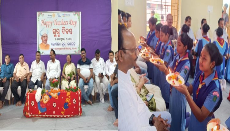 ରୋଟାରୀ କ୍ଳବ୍ ତରଫରୁ ବିଦ୍ଯାଳୟରେ କାର୍ଯ୍ଯରତ ସମସ୍ତ ସେବାବ୍ରତୀ ଆଚାର୍ଯ୍ୟ ଆଚାର୍ଯ୍ୟା ମାନଙ୍କୁ ଅଭିନନ୍ଦନିକା ପ୍ରଦାନ ପୂର୍ବକ ସମ୍ମାନିତ କରାଯାଇଥିଲା। ଏହି ଭବ୍ଯ ଓ ଦିବ୍ଯ କାର୍ଯ୍ୟକ୍ରମରେ ରୋଟାରୀ କ୍ଳବ୍ ର ବରିଷ୍ଠ ସଦସ୍ଯ ପ୍ରକାଶ ଚନ୍ଦ୍ର ପଟ୍ଟନାୟକ,ଜି ରଶ୍ମିରାଜ,ଧୀରେନ୍ଦ୍ର କୁମାର ପଟ୍ଟନାୟକ,ମଦନମୋହନ ମହାପାତ୍ର,ସନ୍ତୋଷ କୁମାର ନାୟକ,ବାସୁଦେବ ସାହୁ,ଆଇନଜୀବୀ ଦେବାଶିଷ ପଟ୍ଟନାୟକ,ଲକ୍ଷ୍ମୀନାରାୟଣ ରଥ, ଶ୍ରୀକୁମର ରଥ, ଅବସରପ୍ରାପ୍ତ ଇଂରାଜୀ ଶିକ୍ଷକ ରାମଚନ୍ଦ୍ର ମହାପାତ୍ର ଯୋଗଦେଇ ଉପସ୍ଥିତ ଆଚାର୍ଯ୍ୟ ଆଚାର୍ଯ୍ୟା ଓ ଛାତ୍ରଛାତ୍ରୀ ମାନଙ୍କୁ ଗୁରୁପୂଜାର ତାପ୍ତର୍ଯ୍ଯ ବିଷୟରେ ବର୍ଣ୍ଣନା କରିବା ସହିତ “ଶିକ୍ଷକ ମାନେ ଯୁଗ ନିର୍ମାତା ଓ ଛାତ୍ର ମାନେ ରାଷ୍ଟ୍ର ଭାଗ୍ଯ ବିଧାତା” ବୋଲି ଆଲୋଚନା କରିଥିଲେ।