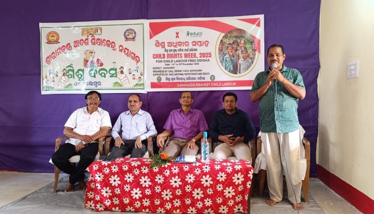 ପଣ୍ଡିତ ଜବାହରଲାଲ ନେହେରୁଙ୍କ ଜୀବନୀ ବିଷୟ ରେ ଆଲୋଚନା କରିବା ସହିତ ଶିଶୁ ମାନଙ୍କ ପ୍ରତି ତାଙ୍କର ଅହେତୁକ ସ୍ନେହ ଶ୍ରଦ୍ଧା ପାଇଁ ଆଜିର ଏହି ଦିବସଟି ସମଗ୍ର ଭାରତ ବର୍ଷରେ ଶିଶୁ ଦିବସ ରୂପେ ଆନନ୍ଦ ଉଲ୍ଲାସରେ ଉଦଭାସିତ ବୋଲି କହିବା ସହିତ ଭଲ ପାଠ ପଢି ଡାକ୍ତର ହୁଅ ଇଂଜିନିୟର ହୁଅ,କଲେକ୍ଟର ହୁଅ ଯେଉଁ ପ୍ରକାର ବଡ଼ ମଣିଷ ହେବାକୁ ଚାହୁଁଛ ବଡ଼ ମଣିଷ ହୁଅ ମନା ନାହିଁ କିନ୍ତୁ ଭଲ ମଣିଷ ହେବା ପାଇଁ ଚେ଼ଷ୍ଟା କର ଏବଂ ଜୀବନରେ କେବେହେଲେ ନିଜ ପିତାମାତାଙ୍କୁ ଭୁଲ ନାହିଁ ବୋଲି ସମସ୍ତ ଛାତ୍ରଛାତ୍ରୀ ମାନଙ୍କୁ ପରାମର୍ଶ ଦେଇଥିଲେ। ମୁଖ୍ଯବକ୍ତା ଭାବେ ବିଶିଷ୍ଟ ସାହିତ୍ଯିକ, ନାଟ୍ୟକାର ତଥା ନାଟ୍ଯ ନିର୍ଦ୍ଦେଶକ ଶରତ ଚନ୍ଦ୍ର ଆଚାର୍ଯ୍ୟ ଓ ସମ୍ମାନିତ ଅତିଥିଭାବେ କେନ୍ଦ୍ରୀୟ ହିନ୍ଦି ସଂସ୍ଥାନ ଆଗ୍ରାର ପ୍ରଫେସର ପ୍ରତାପ ଚନ୍ଦ୍ର ସିଂହ ଯୋଗଦେଇ ଆଜିର ଶିଶୁ ଦିବସ ଅବସରରେ କୌତୁକ ପୋଷାକ ପ୍ରତିଯୋଗିତା ପାଇଁ କୌତୁକିଆ ପୋଷାକ ପରିଧାନ କରି ବିଭିନ୍ନ ପ୍ରକାର ବେଶ ହୋଇଥିବା ଶିଶୁ ମାନଙ୍କୁ ସେହି ବେଶ ହେବାର ଅଭିପ୍ରାୟ ଓ ଲକ୍ଷ୍ଯ ବିଷୟରେ ପ୍ରଶ୍ନ କରି ଶିଶୁ ମାନଙ୍କୁ ଶିକ୍ଷଣୀୟ ଉପଦେଶ ଦେଇଥିଲେ। ଏହି ପରିପ୍ରେକ୍ଷୀରେ ଶିଶୁ ମାନଙ୍କୁ କହିଥିଲେ ଯେ, ତୁମେମାନେ ମୋବାଇଲ ଦେଖୁଛ ମନା ନାହିଁ କିନ୍ତୁ ମୋବାଇଲ ପାଇଁ ନିଜ ଭବିଷ୍ଯତକୁ ନଷ୍ଟ କର ନାହିଁ। ଶିଶୁ ମାନେ ଚଗଲା ବା ବାଳୁଙ୍ଗା ହେଲେ ସେମାନଙ୍କ ଭିତରେ ସ୍ରୁଜନାତ୍ମକ ଚିନ୍ତନ ଉଦ୍ରେକ ହୋଇଥାଏ ବୋଲି ଉପସ୍ଥିତ ପିତାମାତାଙ୍କୁ ପରାମର୍ଶ ଦେବା ସହିତ ଶିଶୁ ମାନଙ୍କୁ ଭୟଭୀତ ନକରି ସେମାନଙ୍କ ସହିତ ବନ୍ଧୁ ହୋଇ ଶିକ୍ଷା ଦାନ କରିବା ପାଇଁ ବିଦ୍ଯାଳୟର ସେବାବ୍ରତୀ ଆଚାର୍ଯ୍ୟ ଆଚାର୍ଯ୍ୟା ମାନଙ୍କୁ ଅନୁରୋଧ କରିଥିଲେ। ଶିଶୁ ଶ୍ରମ ବିରୋଧି ଅଭିଯାନ, ଓଡିଶାର ନୟାଗଡ଼ ଜିଲ୍ଲା ଶାଖା ତରଫରୁ ସମର୍ପଣ କୋଷାଧ୍ୟକ୍ଷ ସନ୍ତୋଷ କୁମାର ନାୟକ ଯୋଗଦେଇ ଆଜିର ଶିଶୁ କାଲିର ନାଗରିକ ଓ ଦେଶର ଭବିଷ୍ଯତ ତେଣୁ ଶିଶୁ ମାନେ ପାଠ ପଢିବା ସମୟରେ ଶିଶୁ ଶ୍ରମିକ ନ ହେବା ପାଇଁ ସମସ୍ତ ପିତା ମାତା ମାନେ ଯତ୍ନଶୀଳ ହେବା ପାଇଁ ନିବେଦନ କରିବା ସହିତ ଶିଶୁ ଶ୍ରମ ମୁକ୍ତ ଓଡିଶା ପାଇଁ ସମସ୍ତ ଓଡିଶାବାସୀ ନାଗରିକ ମାନେ ଦାୟିତ୍ୱ ବହନ କରିବାକୁ ଅନୁରୋଧ କରିଥିଲେ।
