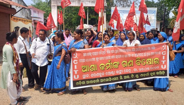 ୧୪ ଦଫା ଦାବୀ ନେ଼ଇ ଶରଣକୁଳ ଗୋଷ୍ଠୀ ସ୍ବାସ୍ଥ୍ୟ କେନ୍ଦ୍ର ସମ୍ମୁଖରେ ଆଶା କର୍ମୀ ଙ୍କ ଗଣ ବିକ୍ଷୋଭ
